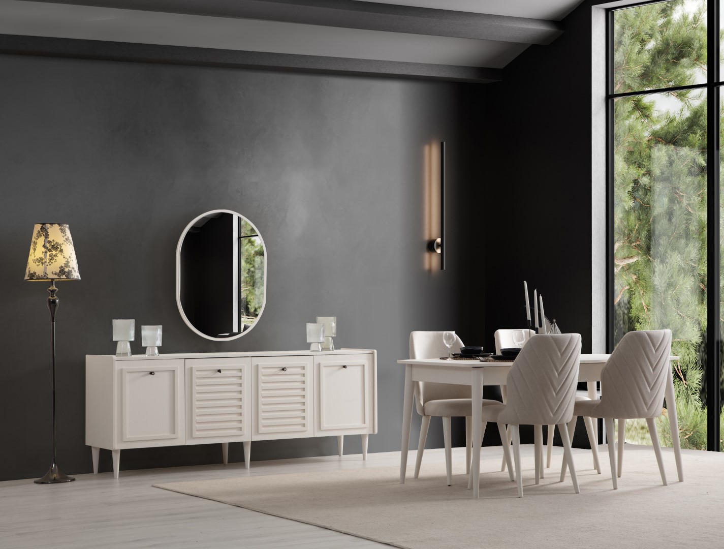 Fiyata dahil parçalar ; 1 Adet Yemek Masası, 6 Adet Sandalye , 1 Adet Konsol ve ayna