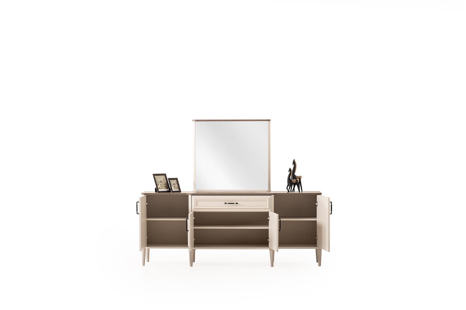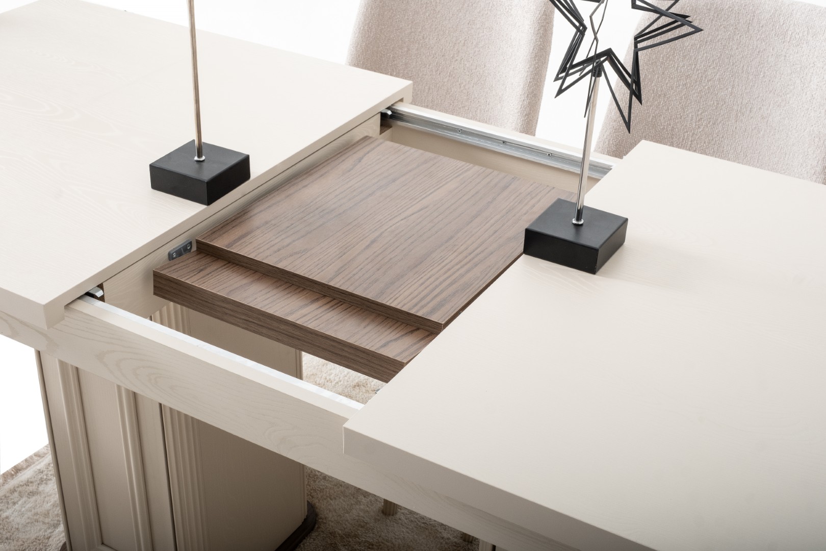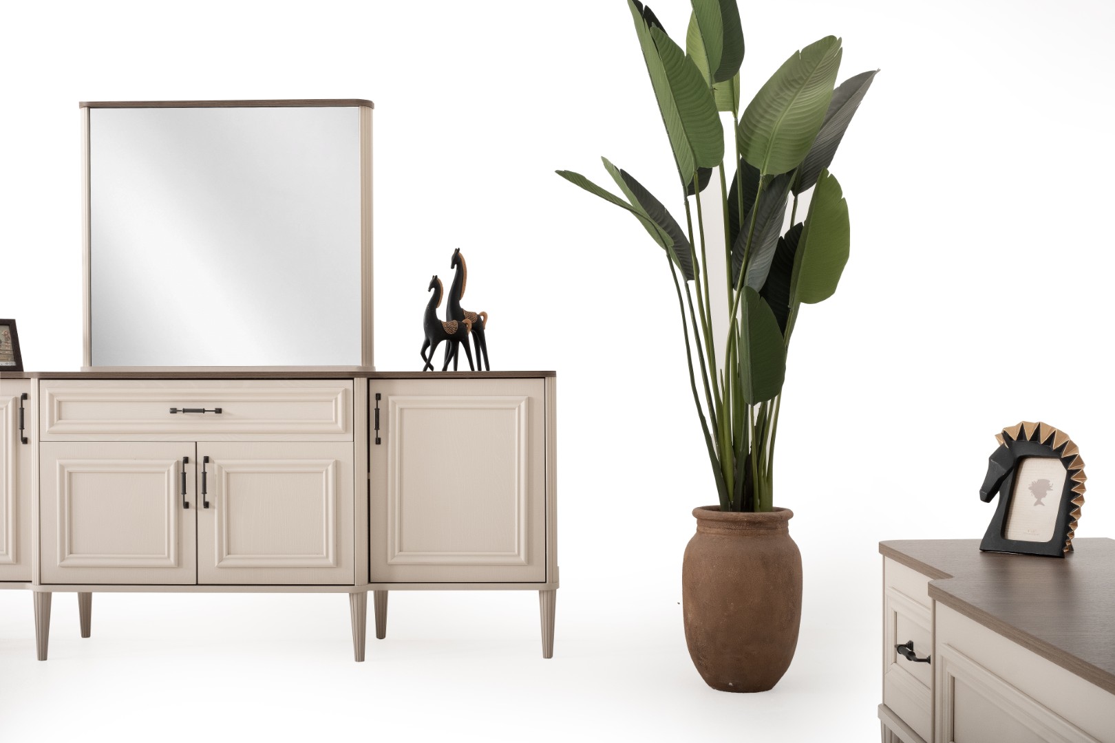 Fiyata dahil parçalar ; 1 Adet Açılır Yemek Masası, 6 Adet Sandalye, 1 Adet Konsol ve ayna