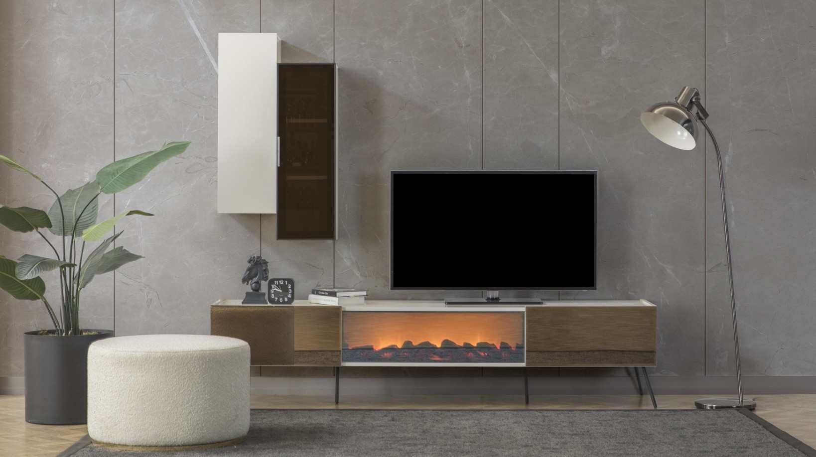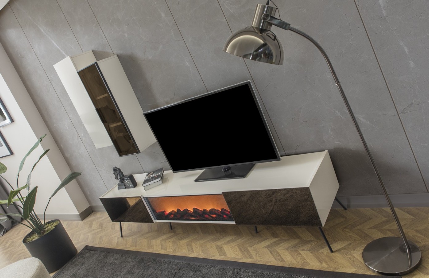 Fiyata dahil parçalar ; 1 Adet Tv ünitesi alt modül - Şöminesiz