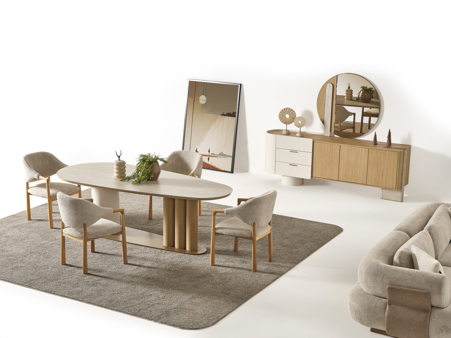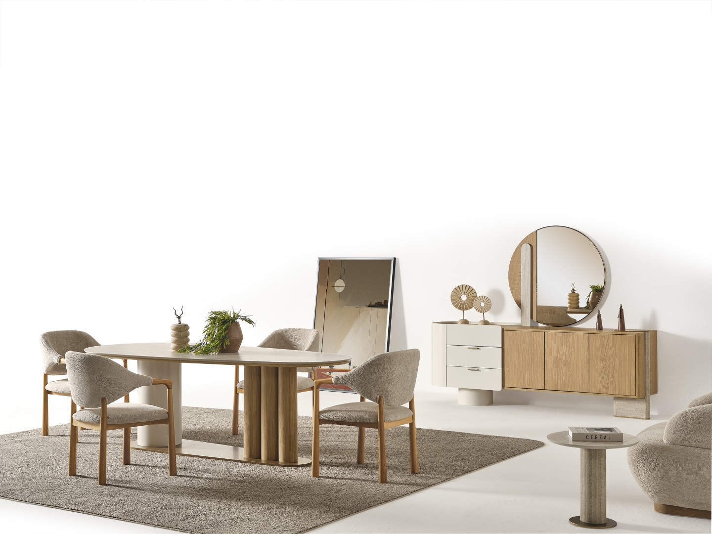 Fiyata dahil parçalar ; 1 Adet Yemek Masası, 6 Adet Sandalye, 1 Adet Konsol ve aynası