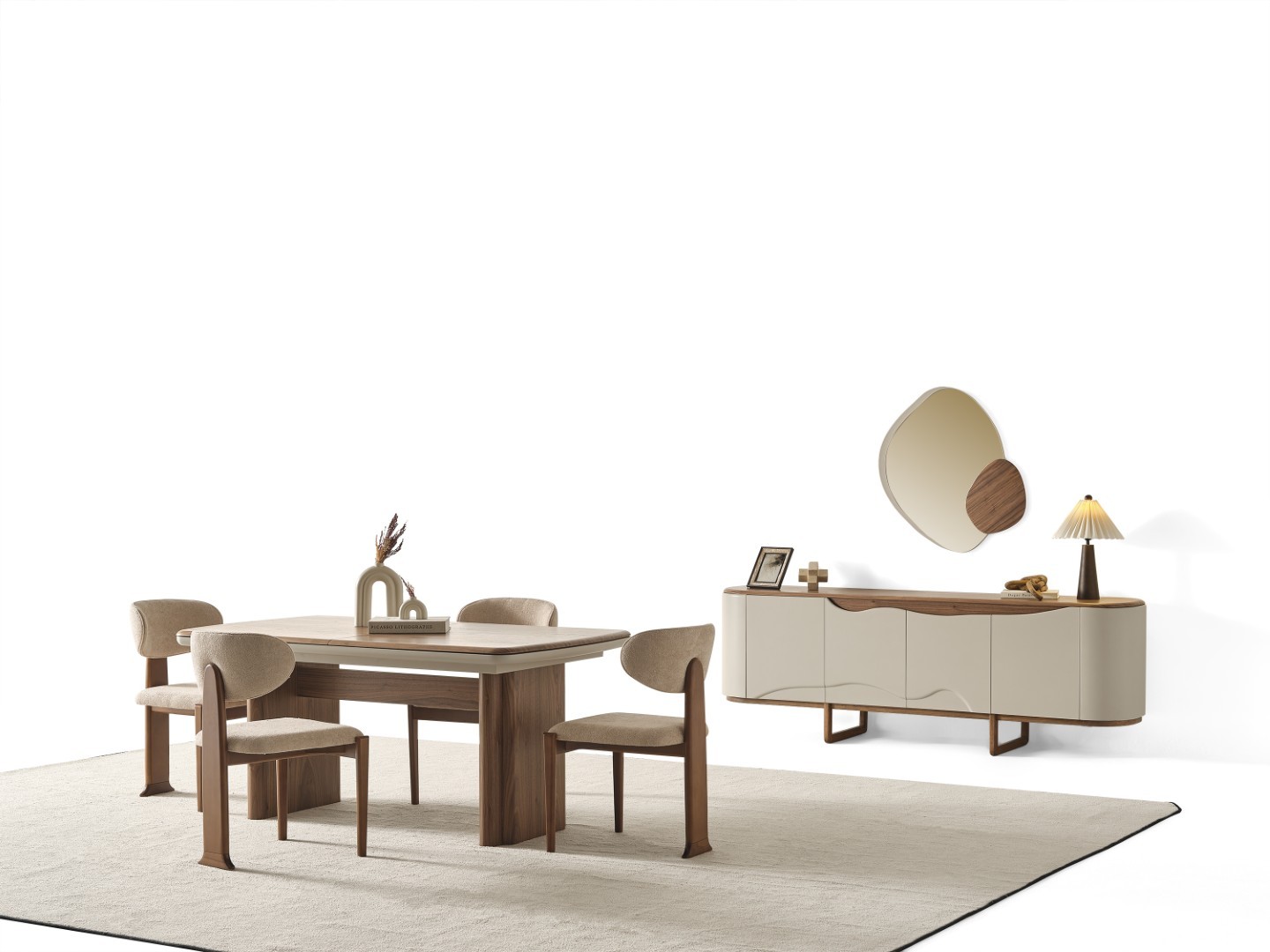 Fiyata dahil parçalar ; 1 Adet Yemek Masası, 6 Adet Sandalye, 1 Adet Konsol