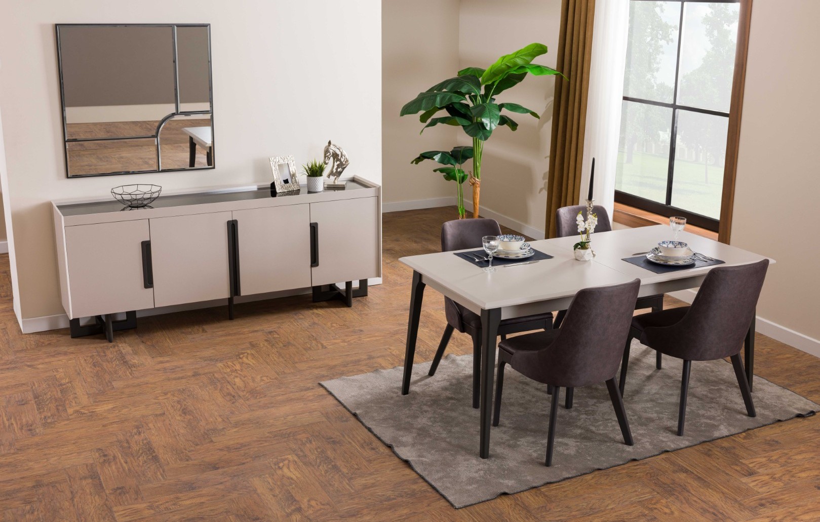 Fiyata dahil parçalar ; 1 Adet Yemek Masası , 6 Adet Sandalye, 1 Adet Konsol