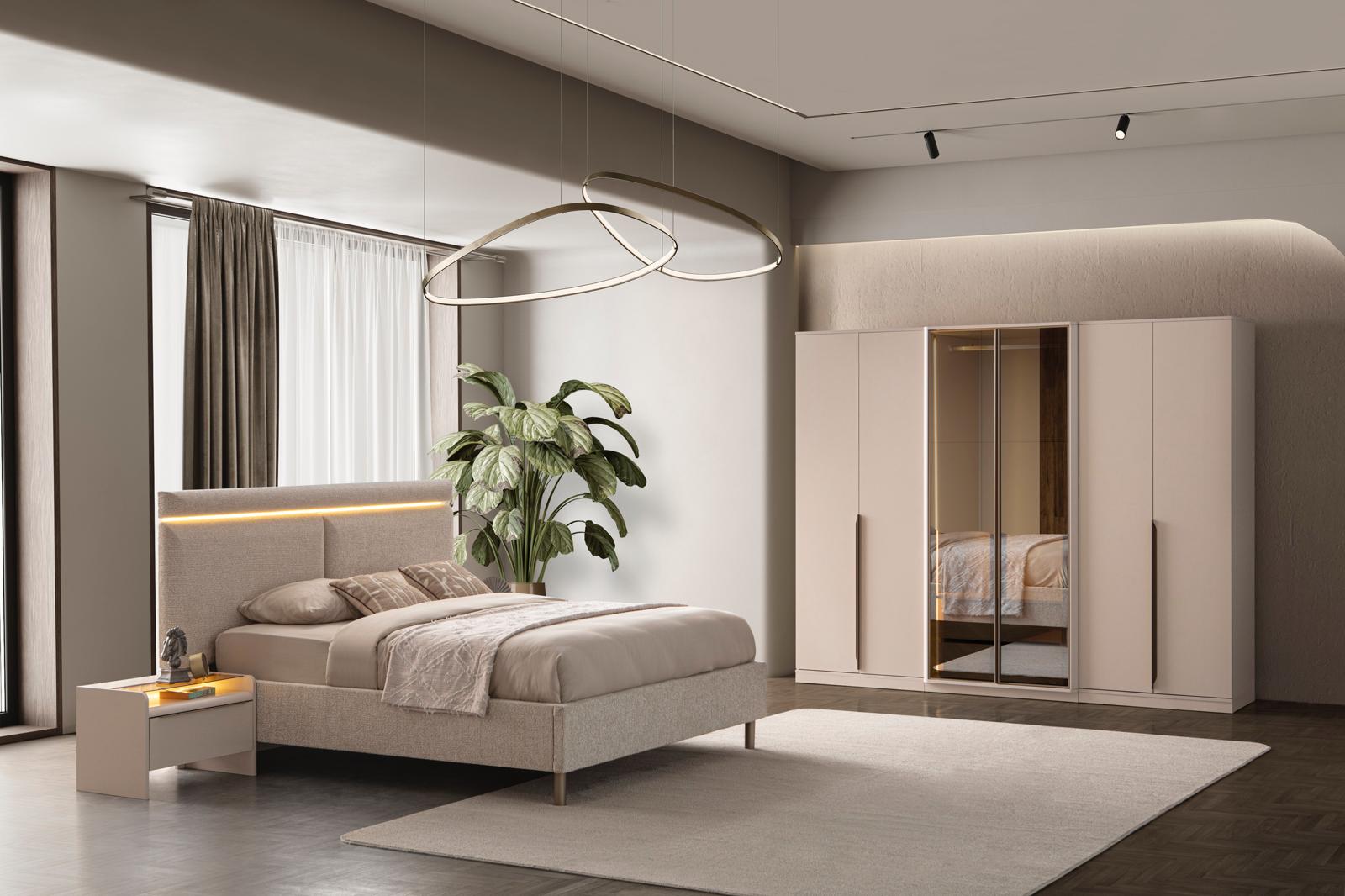 Fiyata dahil parçalar ; 1 Adet Dolap, 1 Adet Şifonyer ve ayna, 2 Adet komidin, 1 Adet Bazalı karyola 160 lık