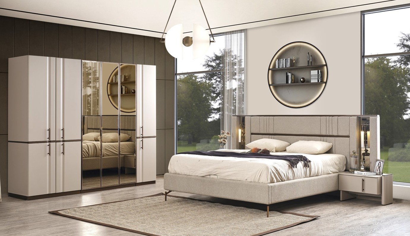 Fiyata dahil parçalar ; 1 Adet 3 Kapılı Dolap, 1 Adet 2 Kapılı Dolap , 1 Adet Şifonyer ve ayna, 2 Adet komidin, 1 Adet Bazalı karyola 160 lık