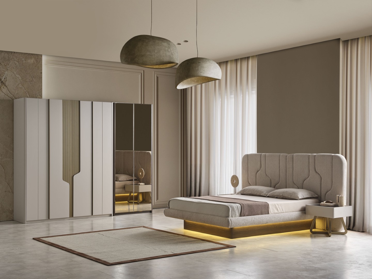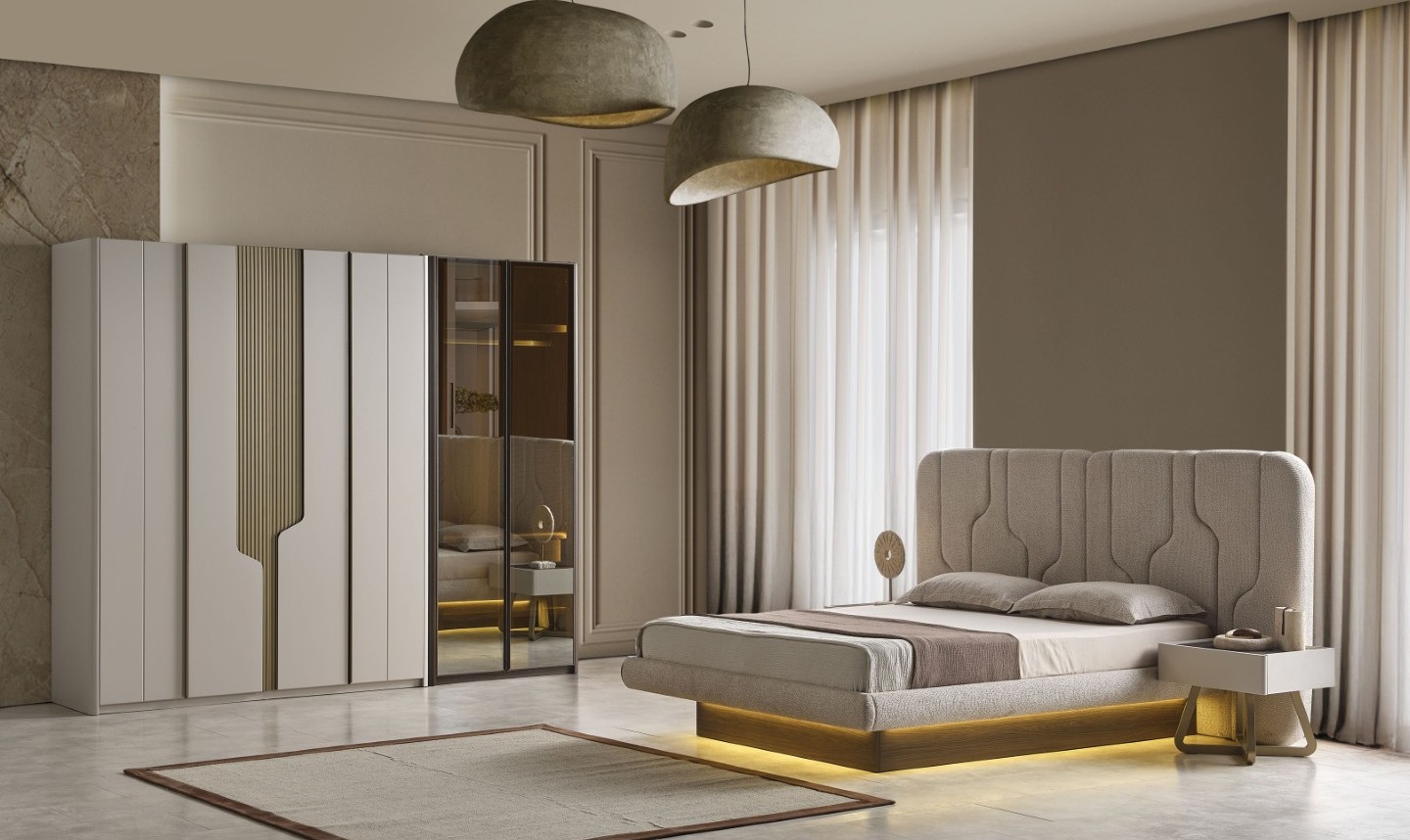 Fiyata dahil parçalar ;1 Adet 4 Kapılı Dolap ,1 Adet 2 Kapılı Dolap, 2 adet Komodin,1 Adet Şifonyer ,1 Adet Karyola 160 lık Bazalı