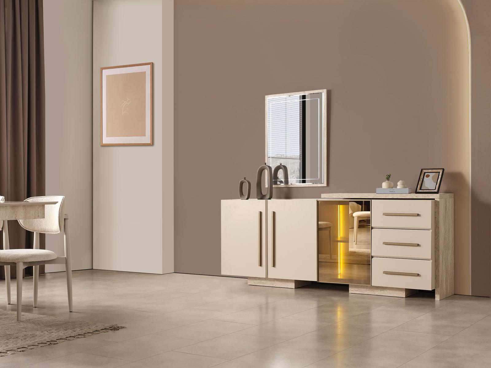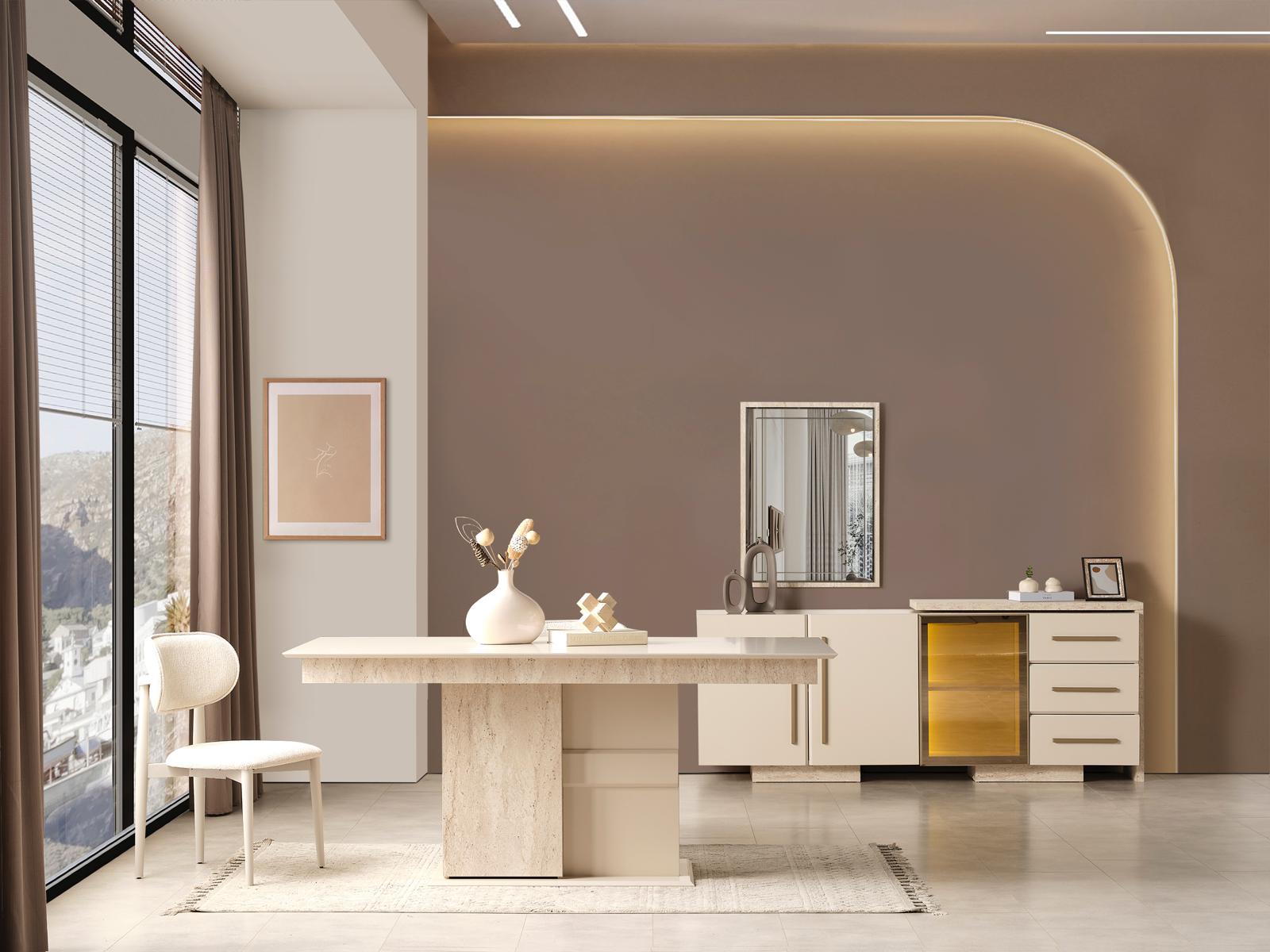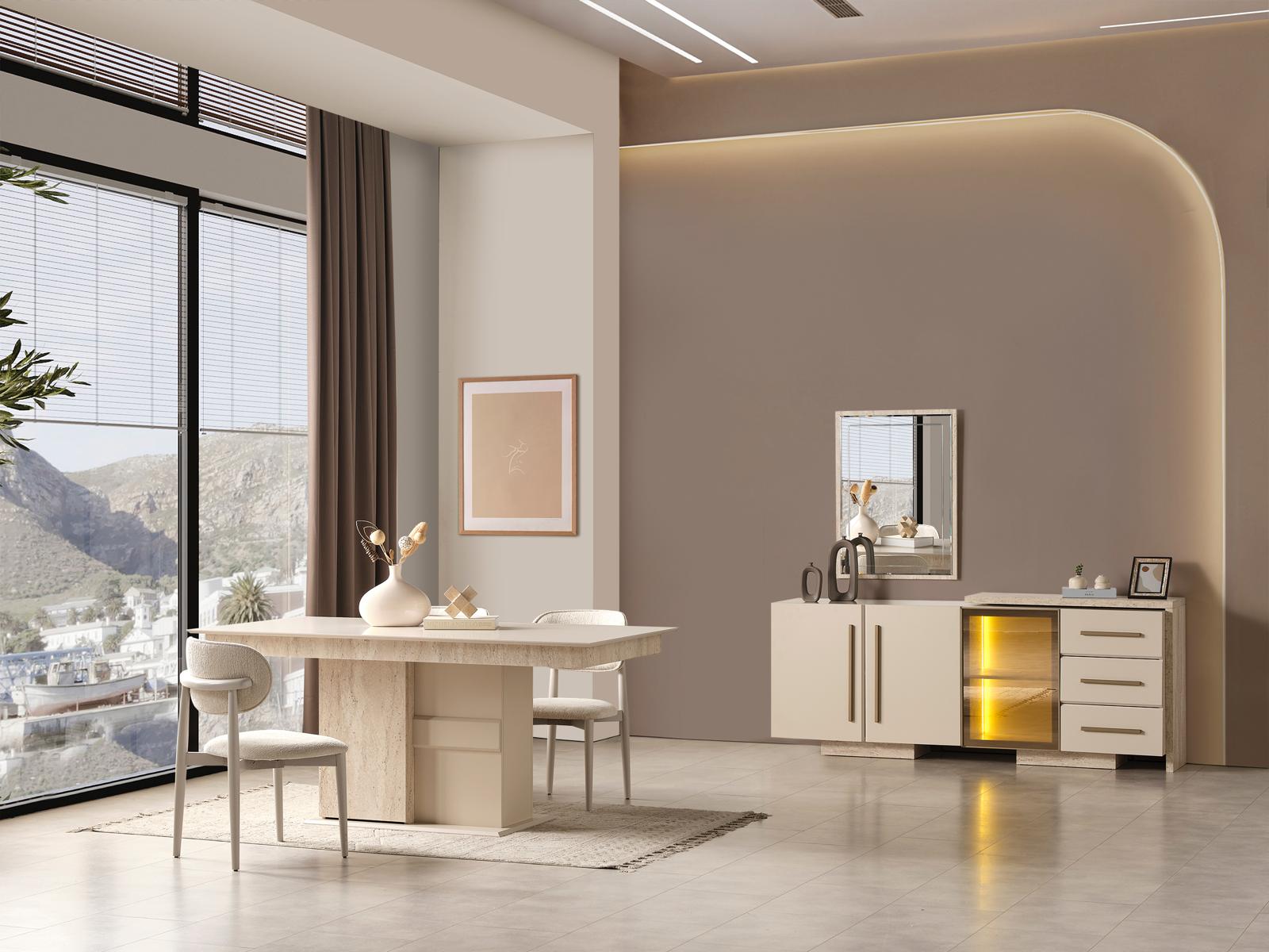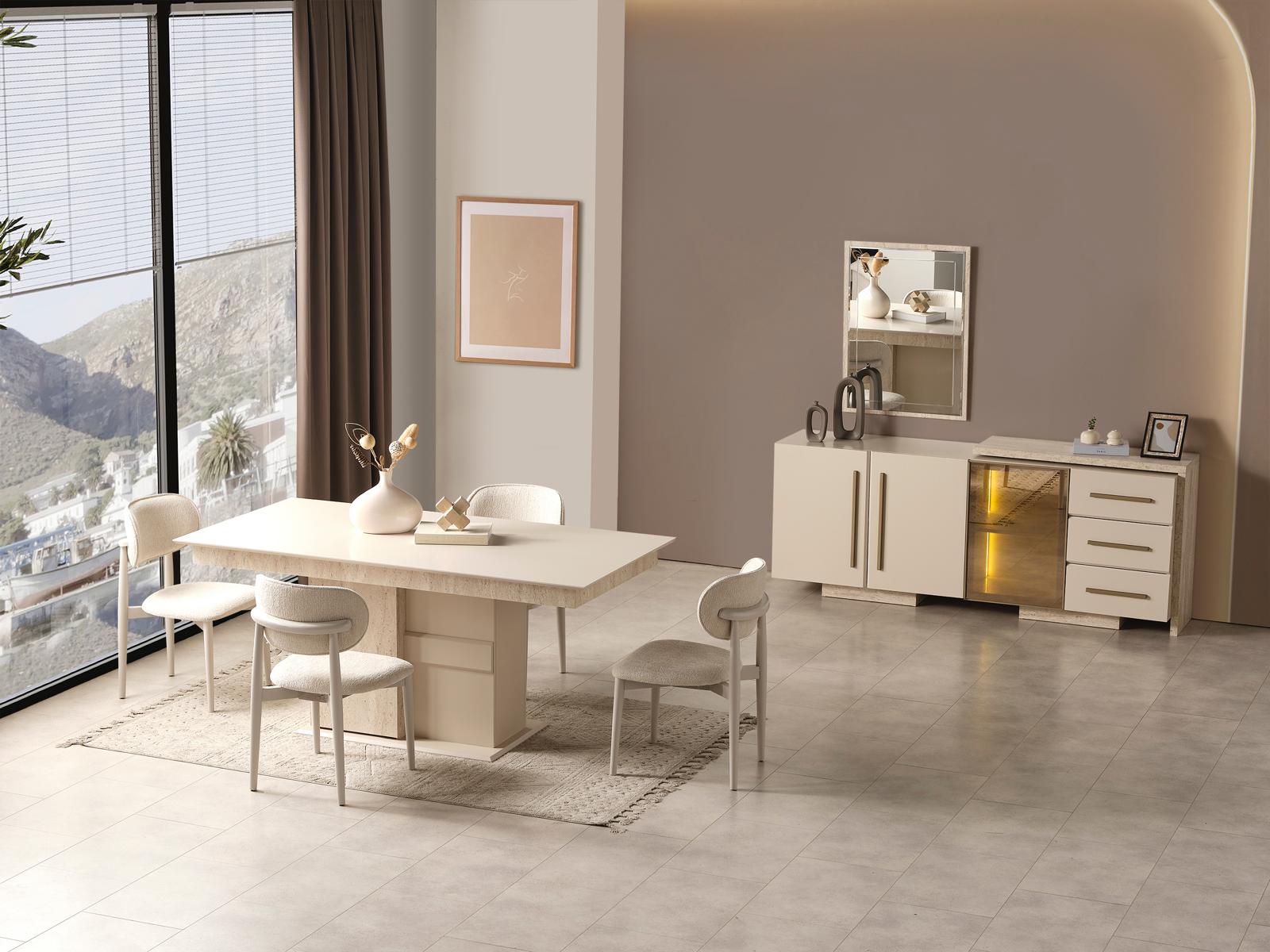 Fiyata dahil parçalar ; 1 Adet Yemek Masası, 6 Adet Sandalye, 1 Adet Konsol ve aynası