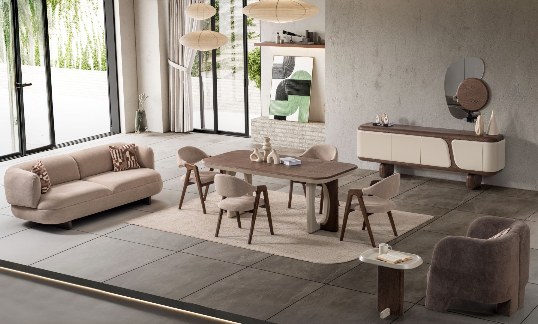 Fiyata dahil parçalar ; 1 Adet Yemek Masası, 6 Adet Sandalye , 1 Adet Konsol