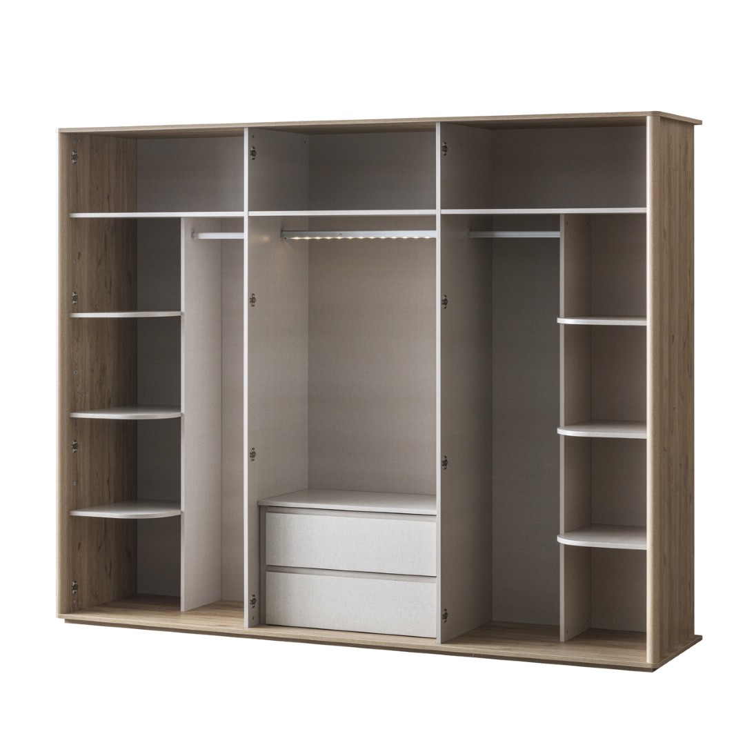 Fiyata dahil parçalar ; 1 Adet 6 Kapılı Dolap, 1 Adet Şifonyer , 2 Adet komidin, 1 Adet Bazalı karyola