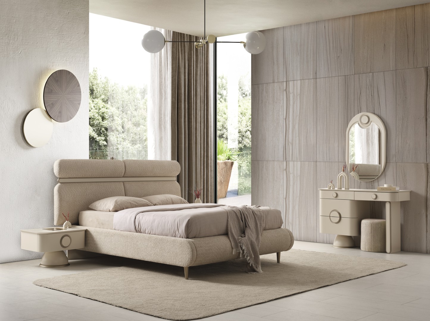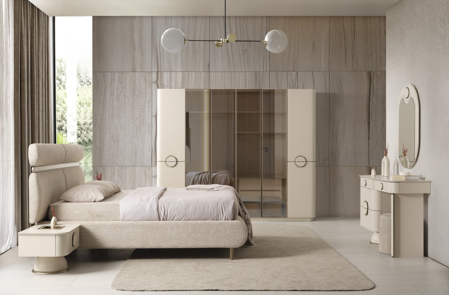 Fiyata dahil parçalar ; 1 Adet Dolap, 2 adet Komodin, Şifonyer ve ayna ve puf , 1 Adet Karyola 160 lık - Bazalı