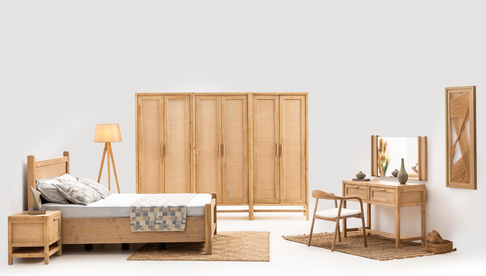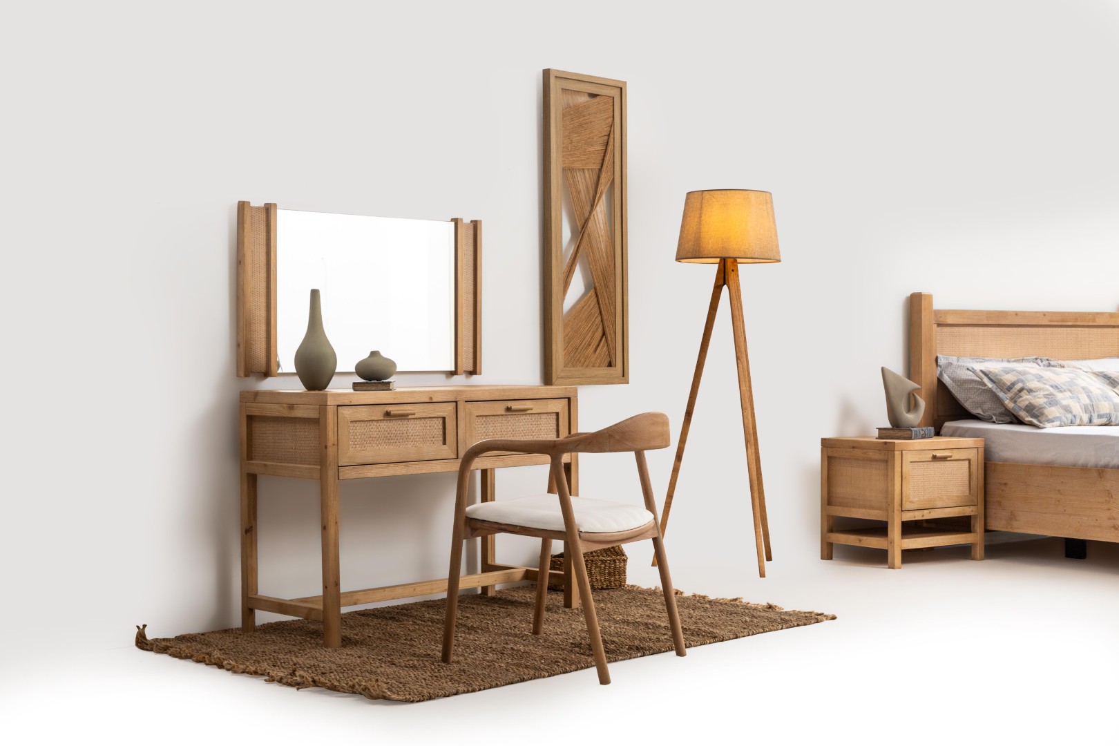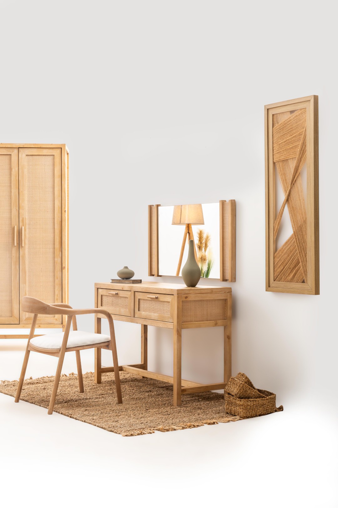 * Doğal dokular, hasır ve ahşap malzemeler