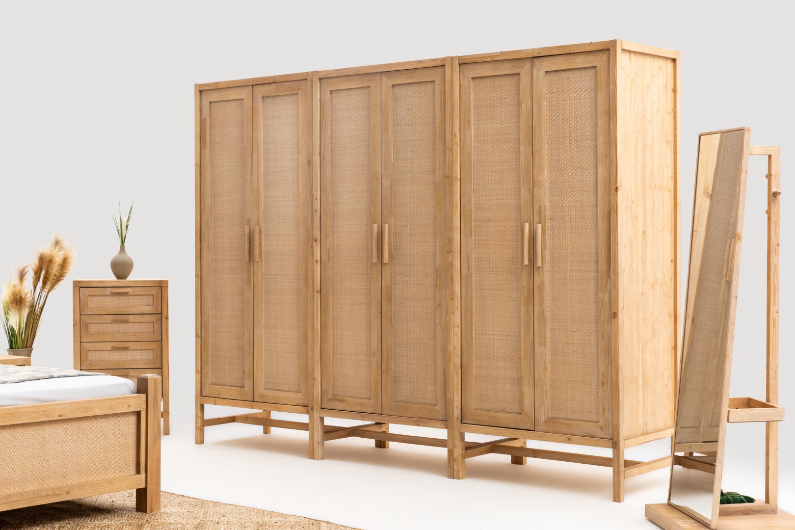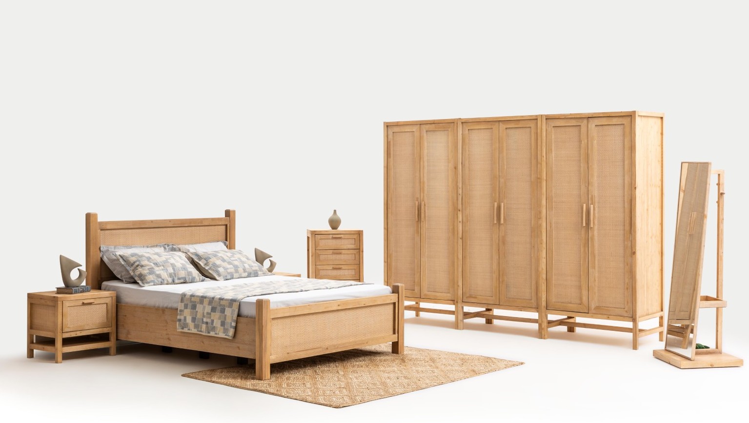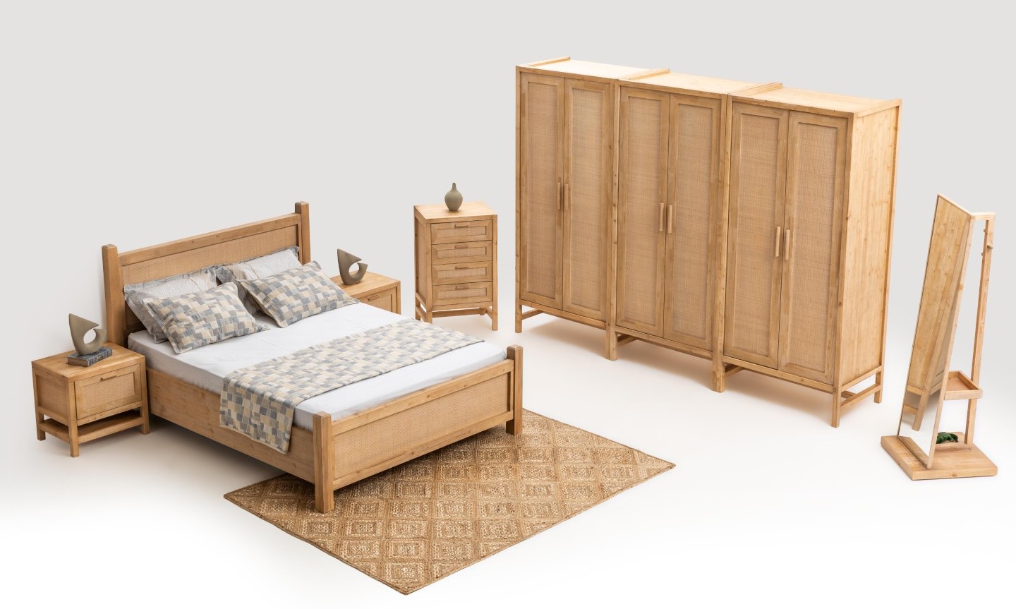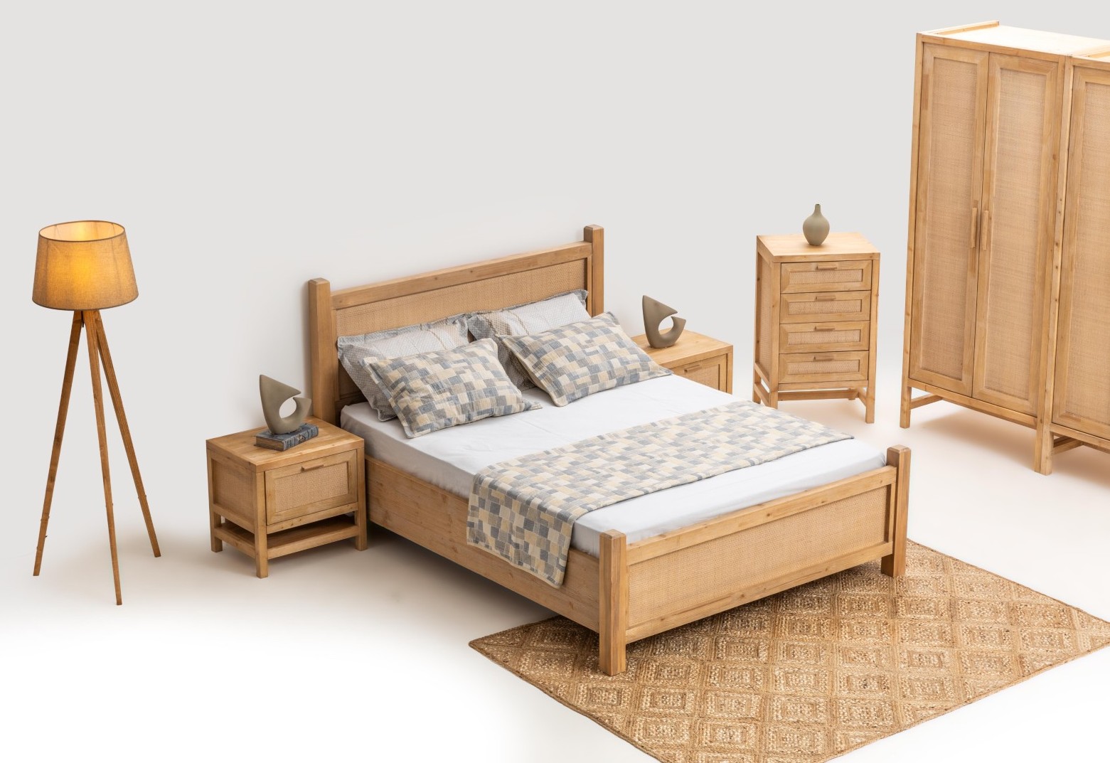 * Doğal dokular, hasır ve ahşap malzemeler
