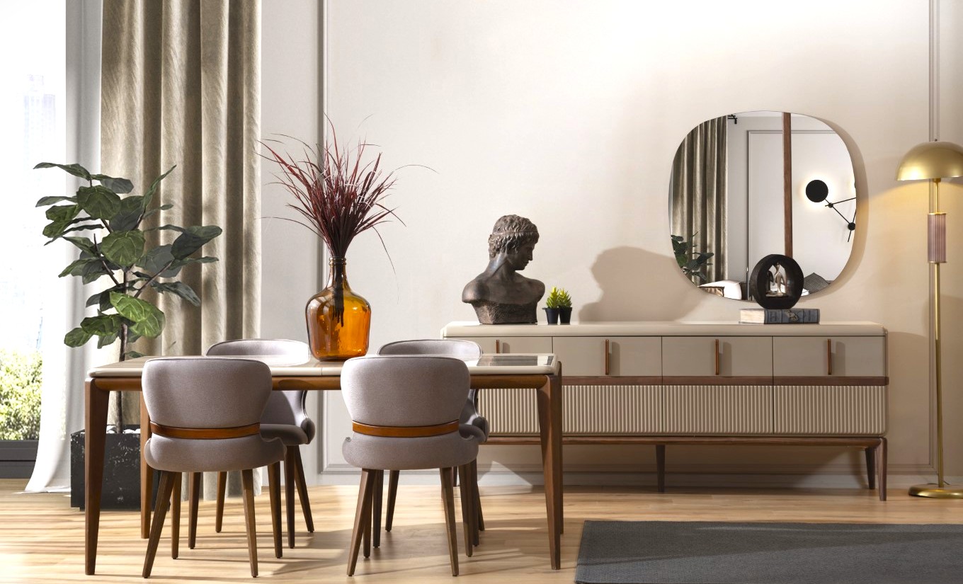 Fiyata dahil parçalar ; 1 Adet Yemek Masası 6 Adet Sandalye, 1 Adet Konsol