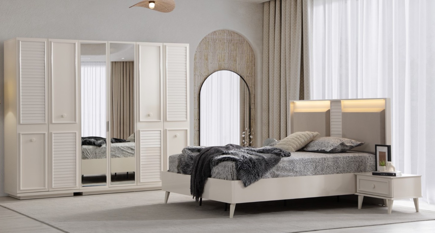 Fiyata dahil parçalar ; 1 Adet 4 Kapılı Dolap, 1 Adet 2 Kapılı Dolap, 1 Adet Şifonyer , 2 Adet komidin, 1 Adet Bazasız karyola 160 lık