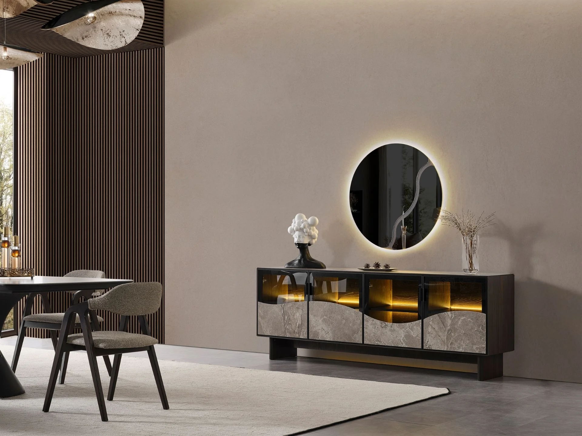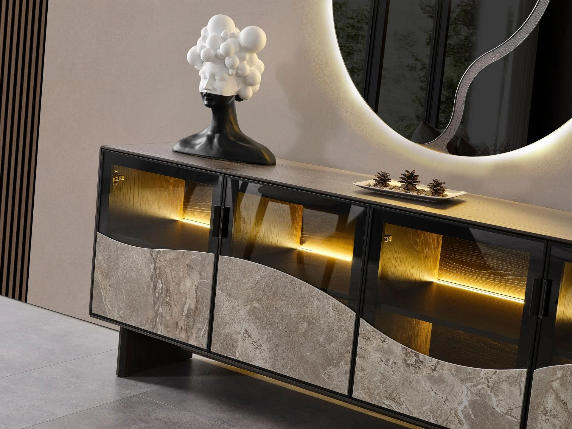 * Yemek masası üzeri ve konsol kapakları seramik malzemedir